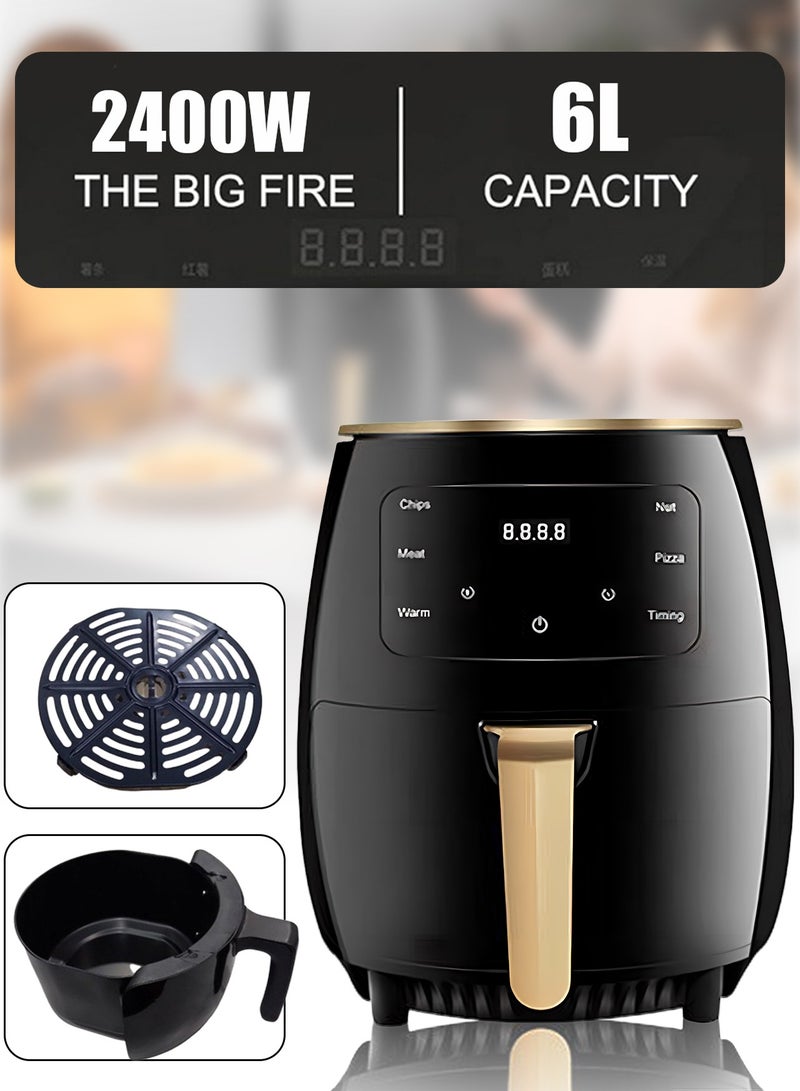 فرن قلي هوائي خالي من الزيت سعة 6 لتر، متعدد الوظائف، 360 درجة ° الخبز بدون زيت البطاطس المقلية آلة البيتزا فرن الدجاج المقلي